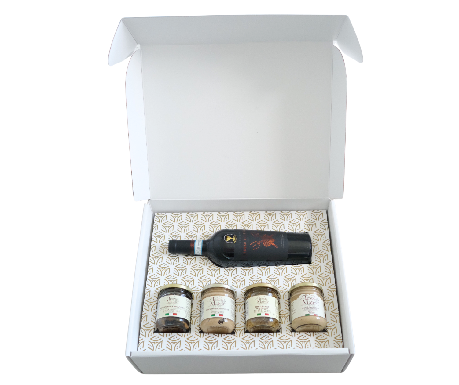 Indulge in the perfect pairing of fine Italian wine and gourmet truffle delicacies. This luxurious set features a bold Raboso del Piave red wine, expertly matched with rich truffle sauces, creamy porcini truffle blends, and delicate sliced truffles in olive oil. Crafted for the true connoisseur, this collection offers an unforgettable tasting experience